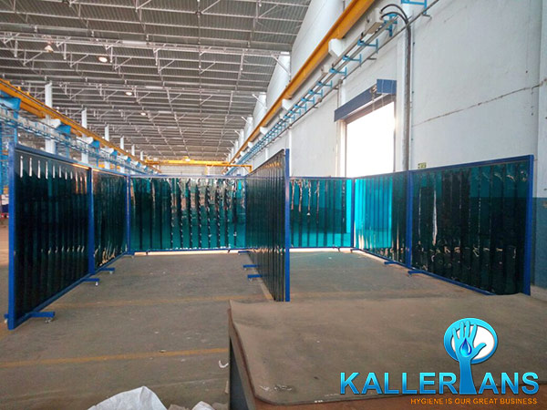 Kallerians welding curtains, Kallerians welding PVC screens and sheets will separate welding areas and keeps workers safe from welding sparks, flash burns, smoke and molten metal. Kallerians welding curtain walls and screens, protects from physical harm and damage from a variety of the hazards that commonly happen in welding operations.